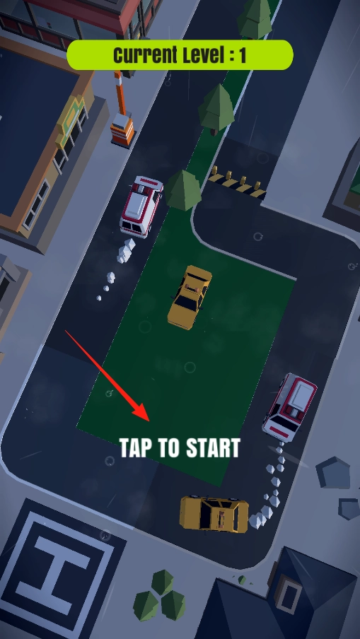 进入Level1场景后,会看到“TAP TO START”的提示,点击该提示即可启动车辆移动,随后开始规划车辆的行驶路线。通过这一系列操作,能够体验基础的关卡启动玩法,同时开启对城市道路挑战的初步感受。