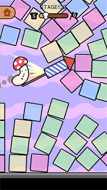 玩家需要滑动游戏屏幕,同时让蘑菇飞起来,如此才能让蘑菇完成跳跃,甚至能附着在不同的障碍物上,只有这样才能持续跳跃,玩家要朝着目的地不断前进。