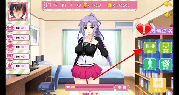 你可以点击锻炼等选项来提升自身属性,这样能让女友变得更有魅力,另外还有恋情任务可以去参与。