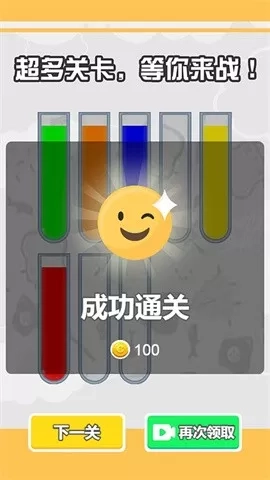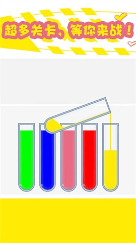 2、若能成功把相同颜色的液体汇聚到一处,即可视为游戏完成。