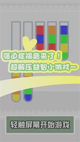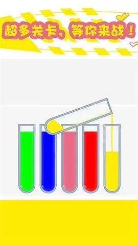 这里有个既有趣又简单的玩法,十分考验玩家的智力,以及根据不同状况灵活操作关卡的能力。这种游戏玩法能够有效缓解压力,为玩家带来无尽的游戏乐趣,还能轻松治愈强迫症。它真的特别简单,适合每一个人,玩家只要将相同颜色的沙子倒入试管里,就能顺利通关。