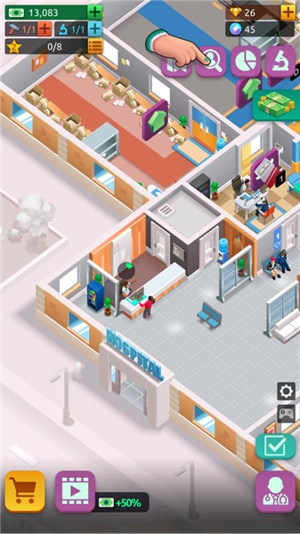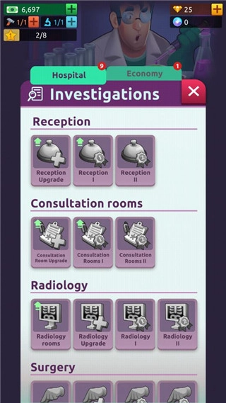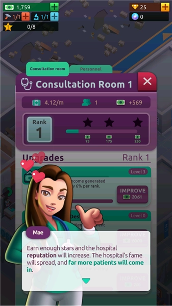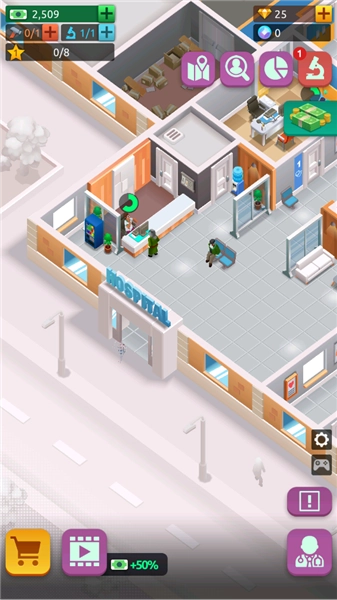 游戏内包含完善的升级体系,玩家能够对医院建筑、医疗设备以及医护员工进行升级操作,以此增强医院的技术实力与服务水准。