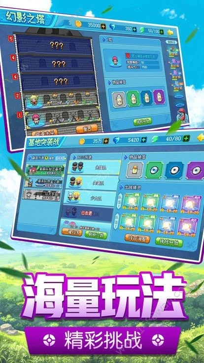 游戏提供了丰富多样的玩法模式,操作简单易上手,玩家可以任意使用精灵的技能,轻松获得游戏胜利。