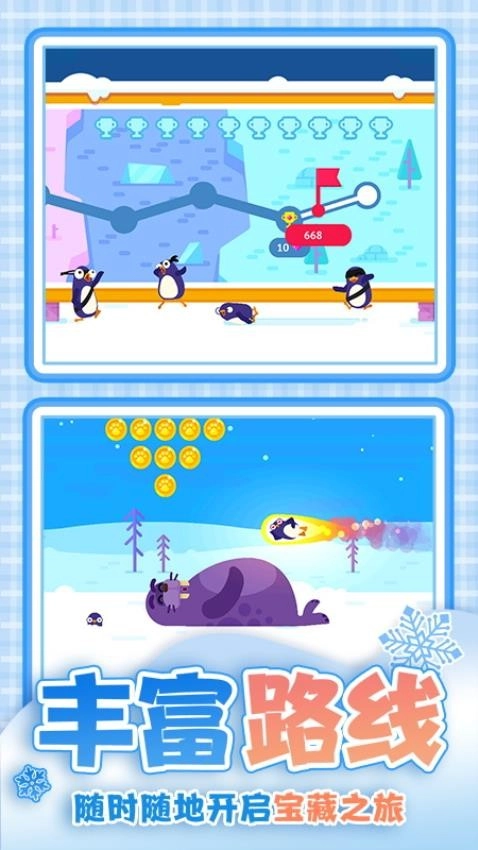 开心炮手是一款十分有趣的休闲闯关游戏。在游戏里,你会化身为投炮手,得挑选合适的企鹅炮弹来投掷,只要把它投到海豹旁边就行,完成的次数越多,能获得的奖励也就越多。不同的场景会呈现出不一样的环境效果,你还能留意到各个地方的天气变化,像雪天,就能得到最好的闯关时机。关卡中还会出现不少金币,你可以借助企鹅炮弹的威力来收集这些金币,从而获取更多资金。游戏整体的玩法和操作都很简单,不需要太多操作步骤,你只要点击拖动炮弹就可以了。要是你也对这款游戏感兴趣,不妨来尝试玩一下吧!