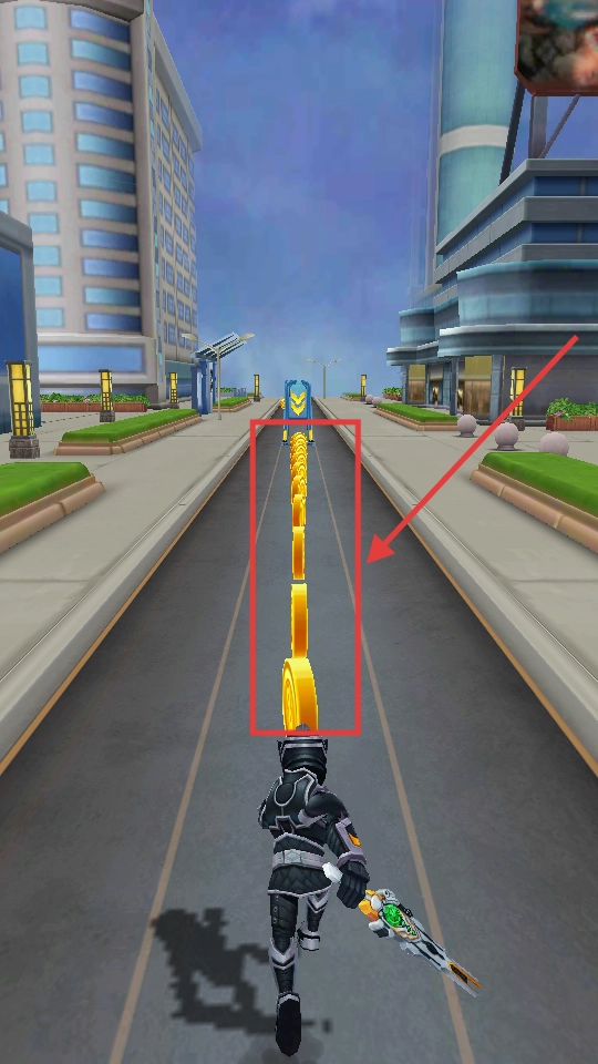 在跑酷关卡里,顺着道路中间的金币排列路线行进,一边收集金币,一边朝着前方的关卡目标推进,以此提升关卡进度。