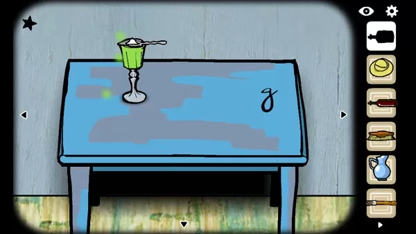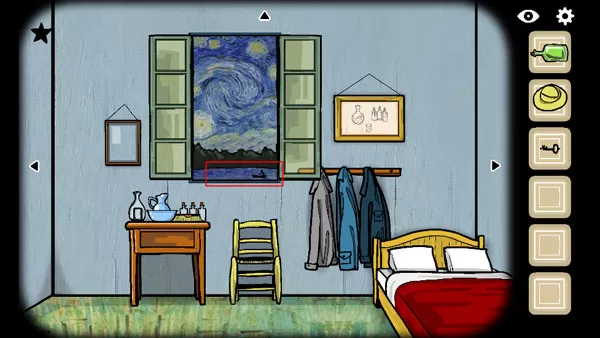5、另一幅拼图出钥匙,钥匙开门。先把苦艾酒给他,完成“干杯”成就,再把帽子给他,得到调色盘。