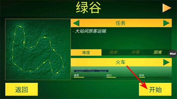 像绿谷这类任务以及任务难度的选择,点击开始按钮就能启动火车运输任务,要结合自己的操作能力,建议先从简单难度开始尝试。