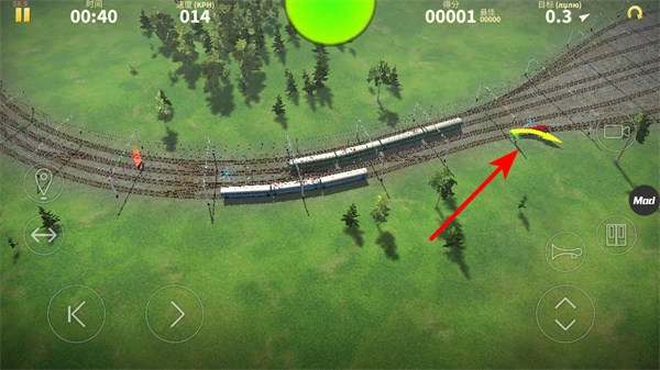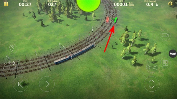 当火车行驶到轨道岔口处,要留意绿色箭头所标示的轨道走向,提前规划好行驶路线,防止列车误入错误的轨道。