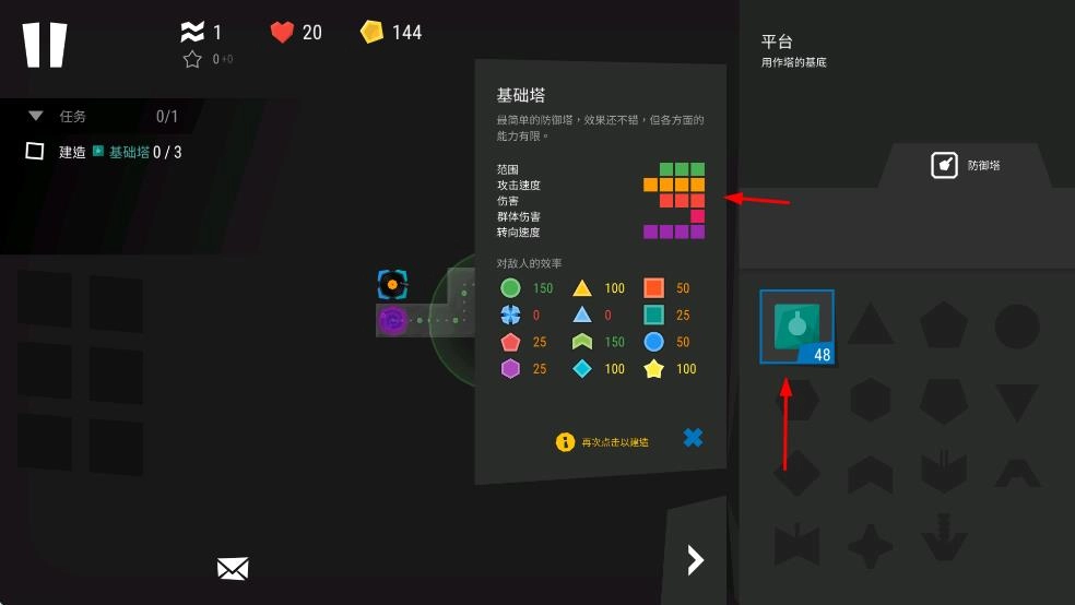 消耗资源搭建基础塔,借助它的攻击范围、伤害等特性抵挡敌人,为守护区域筑牢根基。