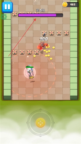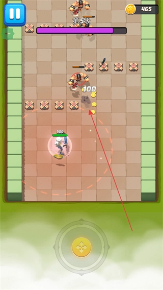 在战斗过程中操控角色移动,角色会自动对敌人发起攻击,击败敌人后能获取金币与经验,要留意避开敌人的攻击范围。