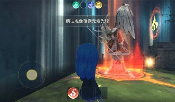 在地图里找到元素雕像,把收集好的元素球嵌进去,这样就能激活传送门,前往下一个区域了。