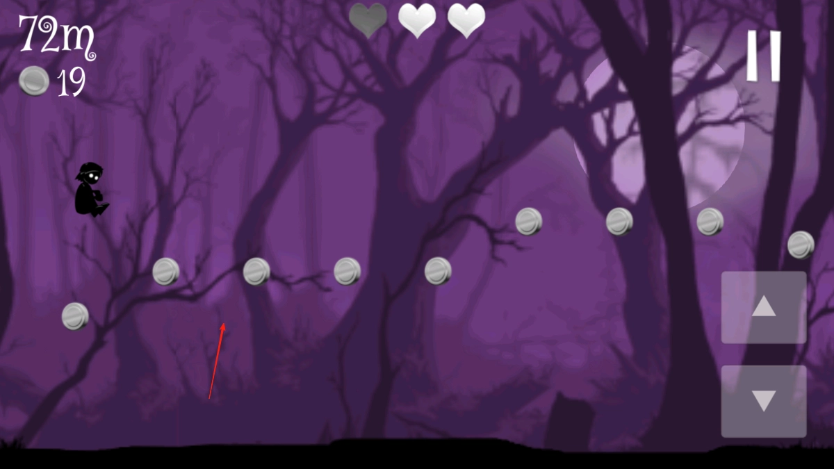 幽灵会笔直向前奔跑,我们无需控制它左右移动,只需操作上下方向就行。沿途会有大量金币出现,通过跳跃就能收集到这些金币。