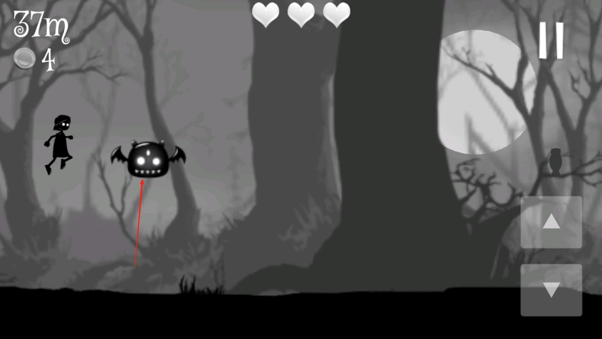 每次都拥有三次生命机会,一旦撞上障碍或者怪物,就会扣除一颗心,并且会回到上一个位置复活。