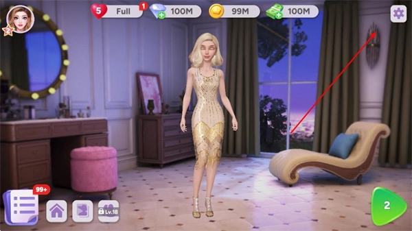 启动好莱坞心动时刻游戏,接着点击界面右上角的设置图标,即可进入设置页面。