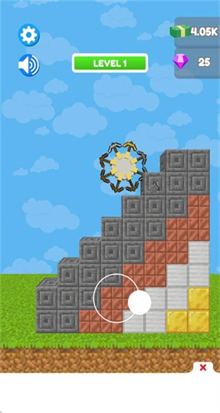 点击PLAY按钮即可进入挖矿关卡,你需要操控带有镐头的装置,对由方块构成的结构展开挖掘。在挖掘的过程中,还能获取金钱奖励。