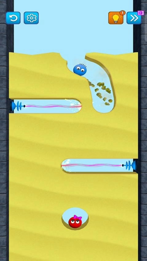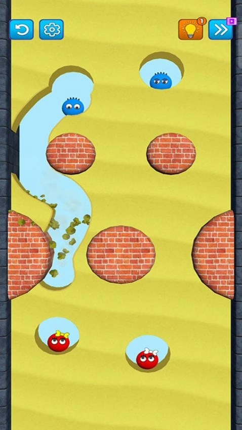 玩家借助滑动或点击的操作来精准清除沙子,利用重力与物理规律,使不同颜色的小球在关卡里成功碰面。