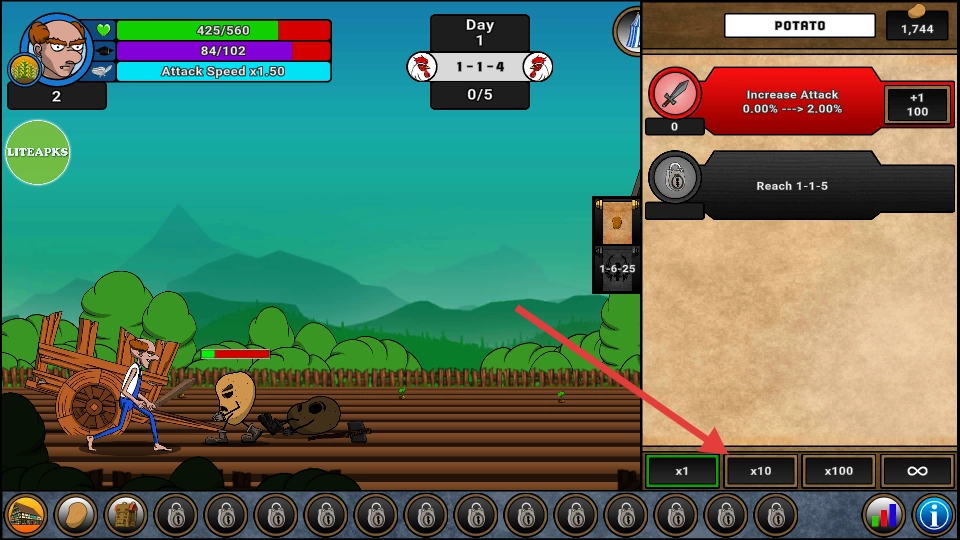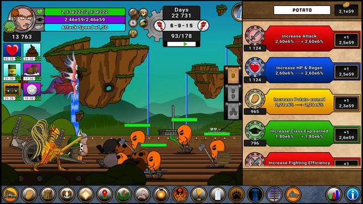 通过土豆与骷髅货币来提升三十多种属性,让锄头挥出加特林般的威力。