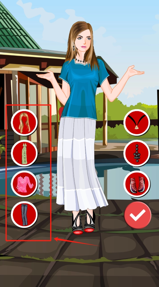 在试衣间场景里,你可以自由搭配不同服装,调整它们的颜色与款式,打造出契合场景主题的整体造型,并且能实时预览搭配效果。