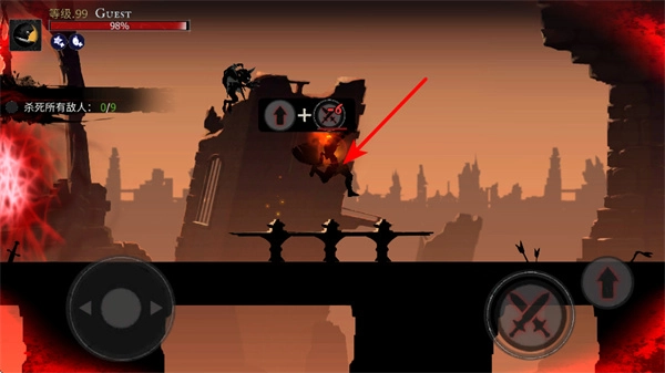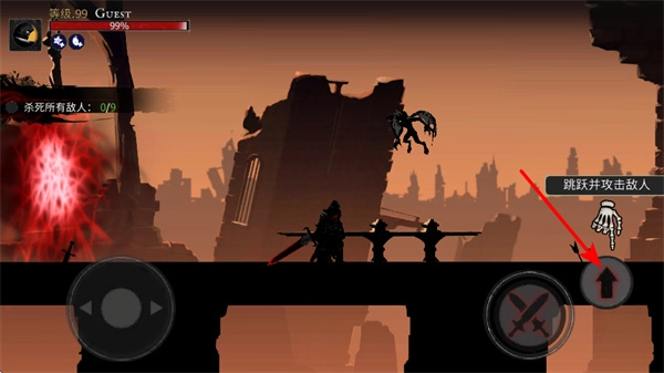 点击跳跃按钮即可发动跳跃攻击,在跳跃过程中攻击敌人,能够对空中或高处的敌人造成伤害,从而扩大攻击范围。