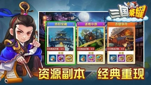 想在三国乱世里共图霸业吗?《三国荣耀》手机版是一款三国题材的Q版卡牌回合制游戏,它复刻了经典的历史故事与战役,玩家能够收集更多三国武将角色并加以培养,通过排兵布阵,搭配出强大的阵容组合去和敌人对战,率领千军万马征战天下,达成一统天下的霸业。
