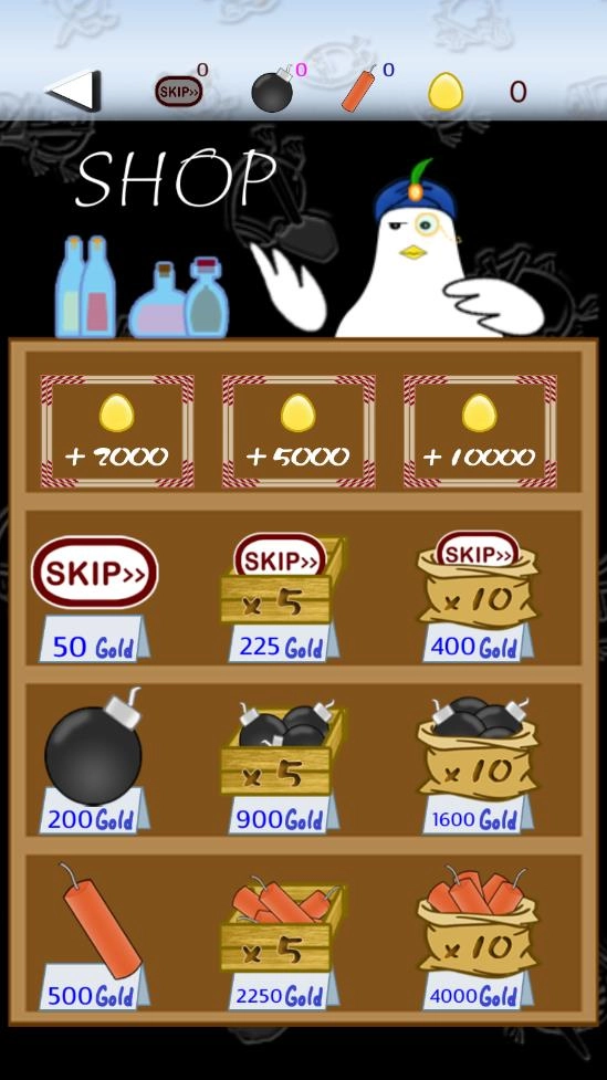 我们的游戏拥有丰富的道具系统,里面包含了多种实用的道具,比如可以帮助玩家跳过关卡的道具,还有能产生不同伤害效果的炸弹等等。玩家可以通过金蛋来购买这些道具,当在游戏中陷入困境的时候,灵活地运用这些道具,能够为顺利通关提供强大的助力,同时也让游戏更具策略性。