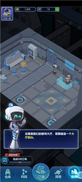 进入游戏后,根据提示先搭建大厅前台,随后依次修建存储仓库、制造工厂之类的基础设施。