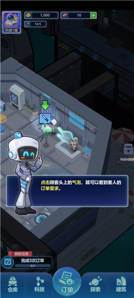 这时会有太空生物顾客前来采购物资,点击顾客头顶的气泡,就能查看客人的订单需求。