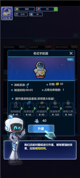 升级宇宙飞船提高宇宙飞船特性。