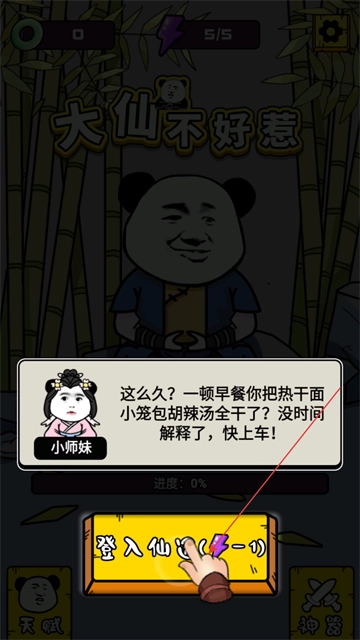 《大仙不好惹》堪称一场魔性拉满的熊猫人修仙盛宴!玩家将化身为圆滚滚的熊猫修士,在水墨氤氲的竹林仙府里,悉心指点门下弟子潜心修炼。通过文字放置与巧妙的卡牌组合,一步步解锁炼气、金丹等不同的修仙境界。在诙谐逗趣的剧情里,你能收服御剑飞行的熊猫剑仙;在自动战斗过程中,可收集灵草炼制仙丹。更有无限仙玉强力加持,一键就能解锁万种功法秘籍,在这些助力之下,尽情体验从扫地杂役逆袭成为仙界至尊的畅快爽感。