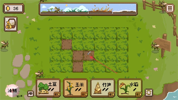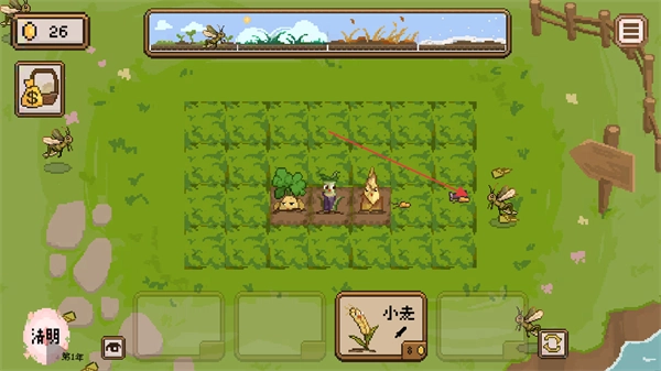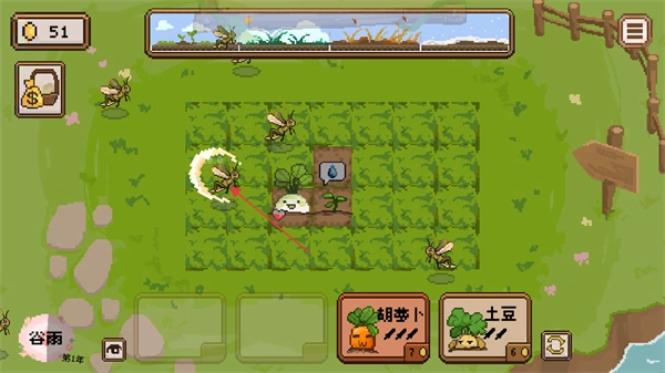 作物在生长时,可能会有虫子出现,点击虫子将其赶走,确保作物能正常生长。