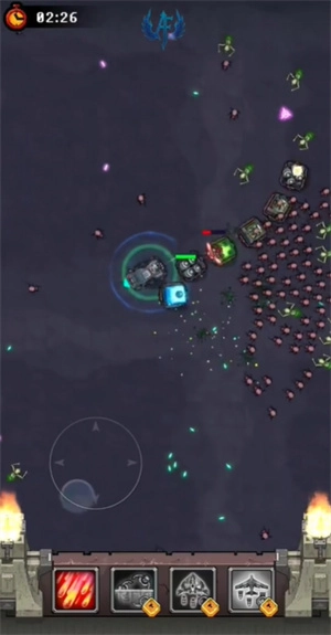 进入关卡地图后,只需通过虚拟按键就能操控战车移动,当附近出现怪物时,战车会自动发起攻击。