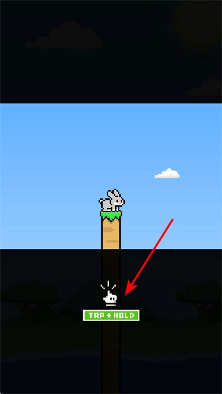 在游戏的操作提示界面中,根据“TAP+HOLD”的指引,点击并按住屏幕,就能操控兔子进行蓄力跳跃,这是熟练掌握兔子跳跃操作的核心步骤。
