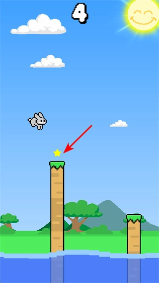 请跟随红色箭头的指引,操控兔子向带有星星的平台跳跃。收集星星能够获得游戏分数或奖励,同时要留意跳跃的精准度,保证成功收集星星。