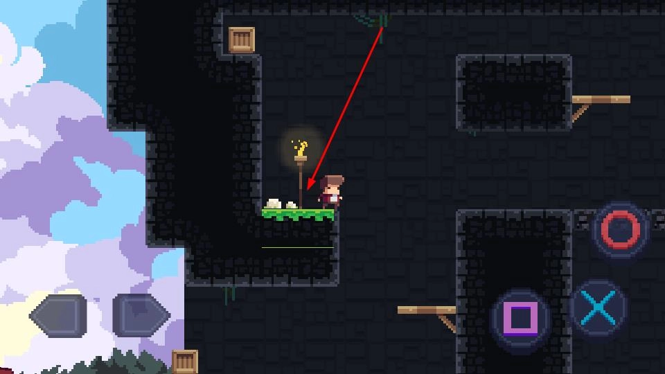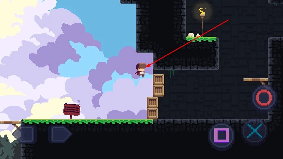 引导角色从初始的草地场景出发,当遇到地形落差(比如草地和石质高地的衔接处)时,点击右侧的跳跃键,精准地跨越障碍,去探索隐藏的路径,同时避开陷阱区域。