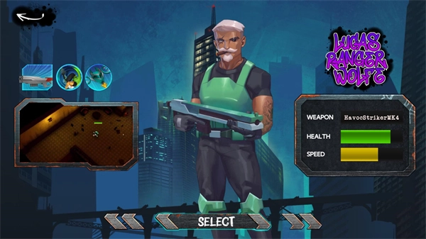 点击play按钮后,你可以挑选想要游玩的角色。若想切换角色,只需点击界面最下方的箭头;当你选好心仪的角色后,点击select按钮即可确认选择。