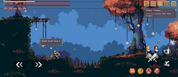 像素画风营造氛围:像素风格细腻勾勒出奇幻世界的每一处细节,从骑士的铠甲纹路到场景的光影变化,配合贴合情境的音效,让森林的静谧、古堡的神秘都极具代入感。