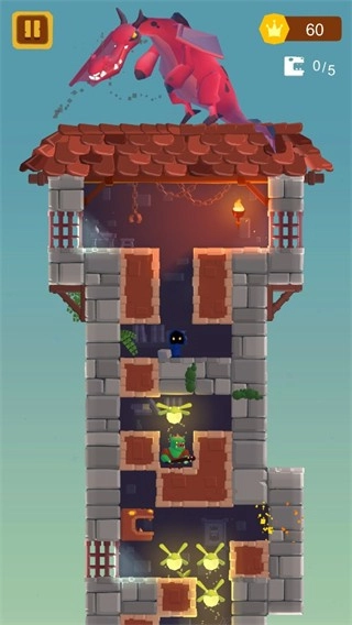 《站上塔楼》是一款休闲动作类游戏,故事背景围绕着王子展开——他本想爬上塔楼顶端解救被困的公主,却在途中被巨龙击败。于是主角的身份发生转变,由接过骑士战锤的公主来续写冒险。玩家将化身这位公主,一路击败怪兽、向着最高塔楼进发。游戏操作并不复杂,核心玩法就是不断向上探索;过程中会随机触发各类事件或遇到阻碍,需要玩家灵活控制方向。整体而言,游戏兼具轻松的氛围与爽快的动作感。