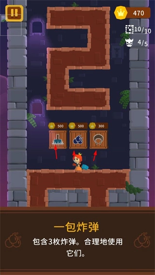 在冒险过程中,玩家能够获取并使用各类道具。例如一包炸弹道具里包含3枚炸弹,玩家需要合理地运用这些炸弹,以此来清除前进路上的障碍或者攻击敌人,从而为自己的冒险提供帮助。