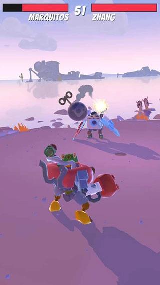 在对战过程中,玩家需要操控自己的角色去撞击敌方机器人,这一撞击操作是对敌方造成伤害的关键环节。每次成功撞击后,敌方的血量就会相应减少,随着战斗的推进,这样的操作能帮助玩家逐步积累起战斗上的优势,最终赢得这场对战的胜利。