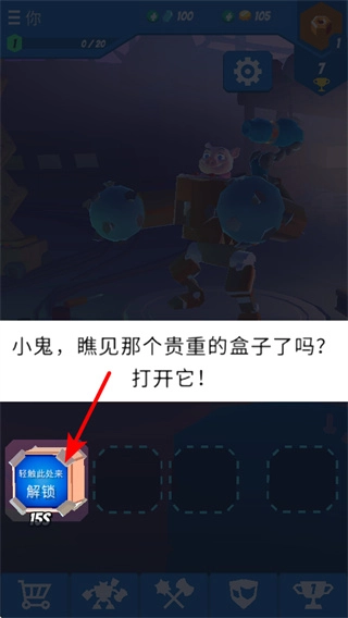 点击解锁按钮打开贵重盒子,开启盒子是获取道具的关键步骤,打开后能得到强化材料或新道具,增强角色的战斗能力。