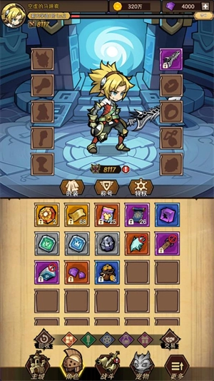 在主界面点击角色按钮,就能穿戴已获得的装备,以此提升你的战斗力。