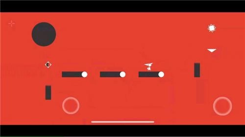 1、第一关,先从左到右跳跃,进入右边的白圈后等待画面变化,再跳跃到左边的白圈即可。