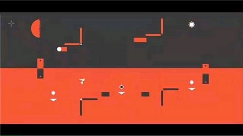 5、第五关,本关为竖屏模式,不断跳跃切换场景向上爬,触碰到上方白圈后,场景变化为横屏,按照一开始继续向上跳跃即可。