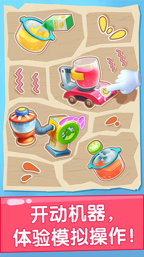 可以操作具备不同功能的机器,亲身感受制作过程带来的乐趣;还能选用各式各样的配饰装点果汁杯,解锁丰富多样的玩法。