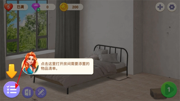 打开物品清单,点击界面左下角的清单按钮,查看房间需要添置的物品列表,明确改造需求。