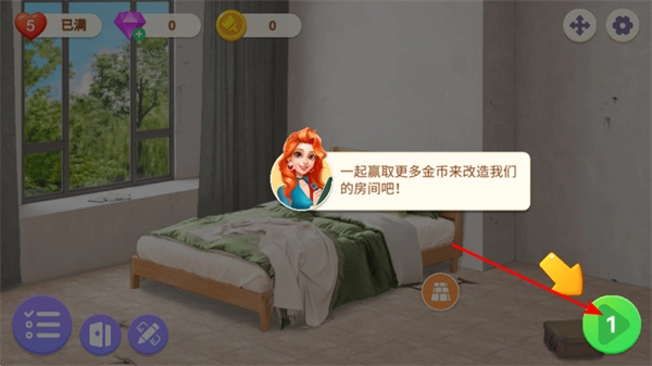 推进关卡时,点击那个绿色的前进按钮,就能进入下一个环节,继续开展房间改造工作或者解锁新的游戏内容。