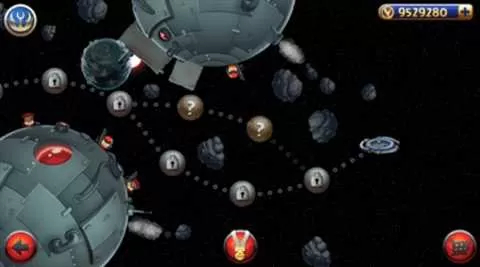 这款游戏大胆地将传统的愤怒的小鸟物理弹射玩法巧妙地融入到了星球大战充满科幻风味的故事情节之中。