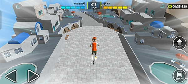 这款游戏的操作玩法其实挺简单的,只要熟悉左侧的方向控制,以及右侧的加速、刹车和跳跃按键就行。游玩时要注意避开障碍物和其他选手,一旦发生碰撞就会减速。另外,在踏板跳跃的过程中,多次点击方向键能帮助提升速度,最终率先冲过终点的选手就能赢得胜利。