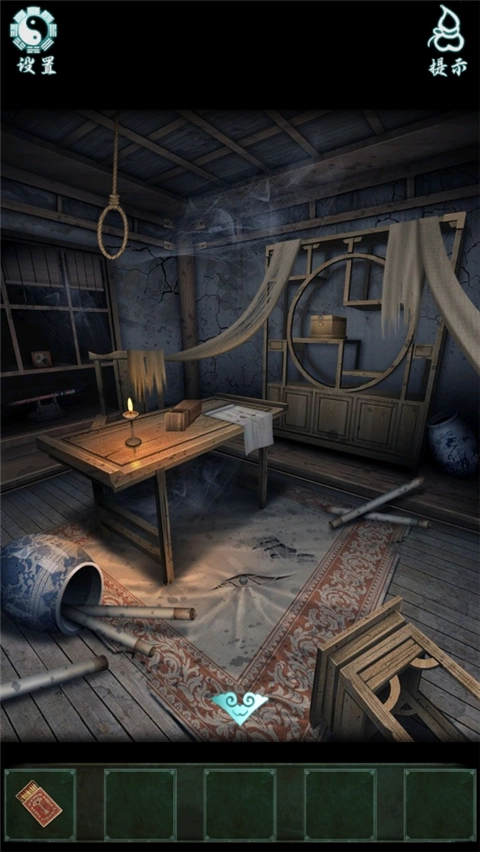 走到棺材旁,点燃七星灯并挂起灯笼,得到最后的八卦提示。按照“上九下四”的提示拨动八卦盘。