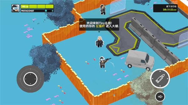 进入游戏后会有新手教程,左侧用于控制人物行动。